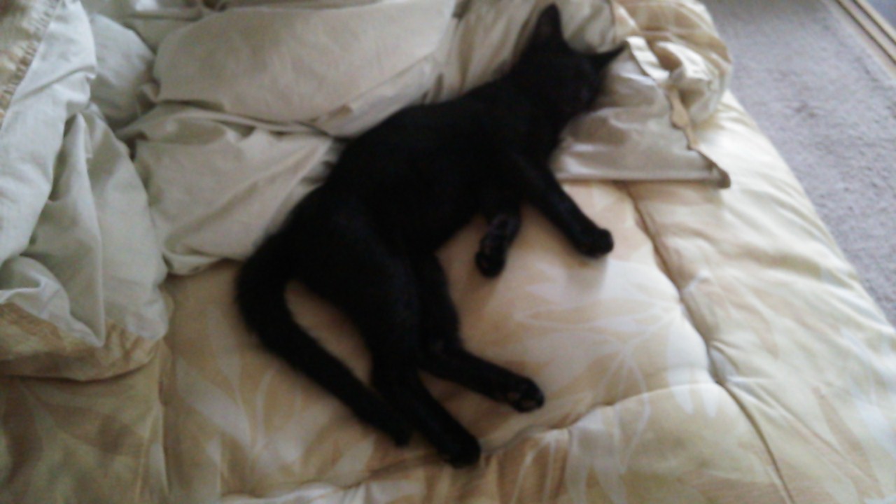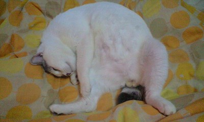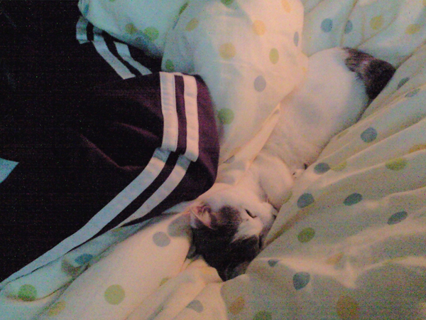 私の布団の中で寝てる時も寝言は言うし、夢見てピクピクしてるし。本気で爆睡しています。