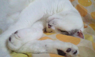 私の布団の中で寝てる時も寝言は言うし、夢見てピクピクしてるし。本気で爆睡しています。
